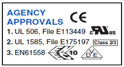 - Short-circuit-proof (where noted: 1/2/3* under Agency Approvals)